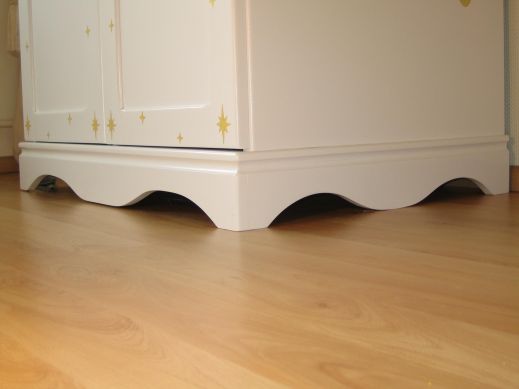 Un commode de princesse, robuste, peinte en blanc, avec un miroir, et surmontée d'une couronne. Un produit exceptionnel d'Oli&Niki. A l'intérieur, d'un côté un casier et une penderie avec une tringle chromée, de l'autre 4 espaces de rangement. L'intérieur aussi est peint !!!